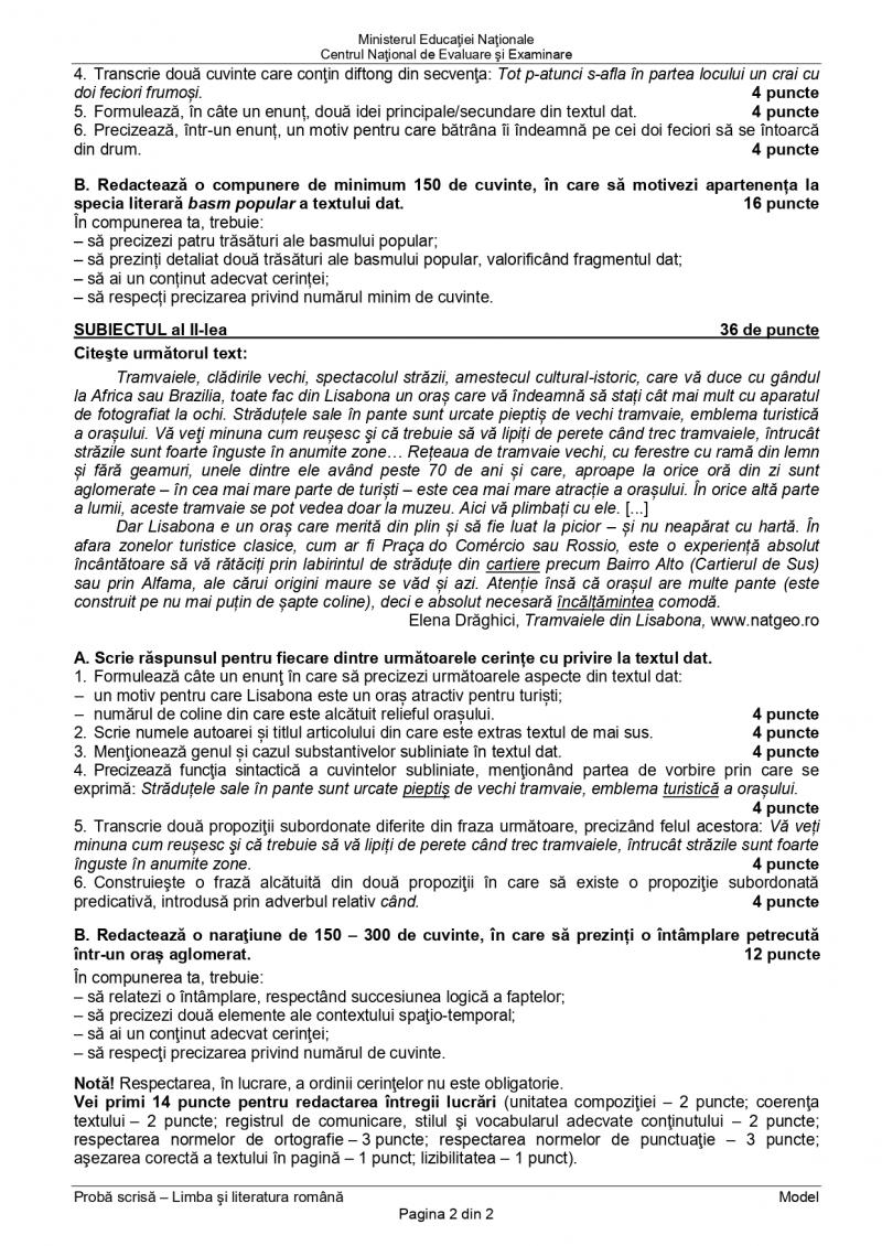 Lucrările vor fi corectate în alte judeţe, în 92 de centre de corectare, iar primele rezultate. Între cerințele pentru rezolvarea subiectelor la română la evaluare națională 2021 se numără notarea unor cuvinte care arată timpul în care se desfășoară acțiunea, stabilirea unei legături între cele două texte, identificarea diftongului sau a. Subiecte limba română simulare evaluare națională 2021 barem de corectare calendar simulare evaluarea națională 2021 regulile simulării la evaluarea națională 2021. Autorităţile au făcut public baremul subiectelor de la limba şi literatura română. Ai imagini sau informaţii care ar putea deveni o ştire?
