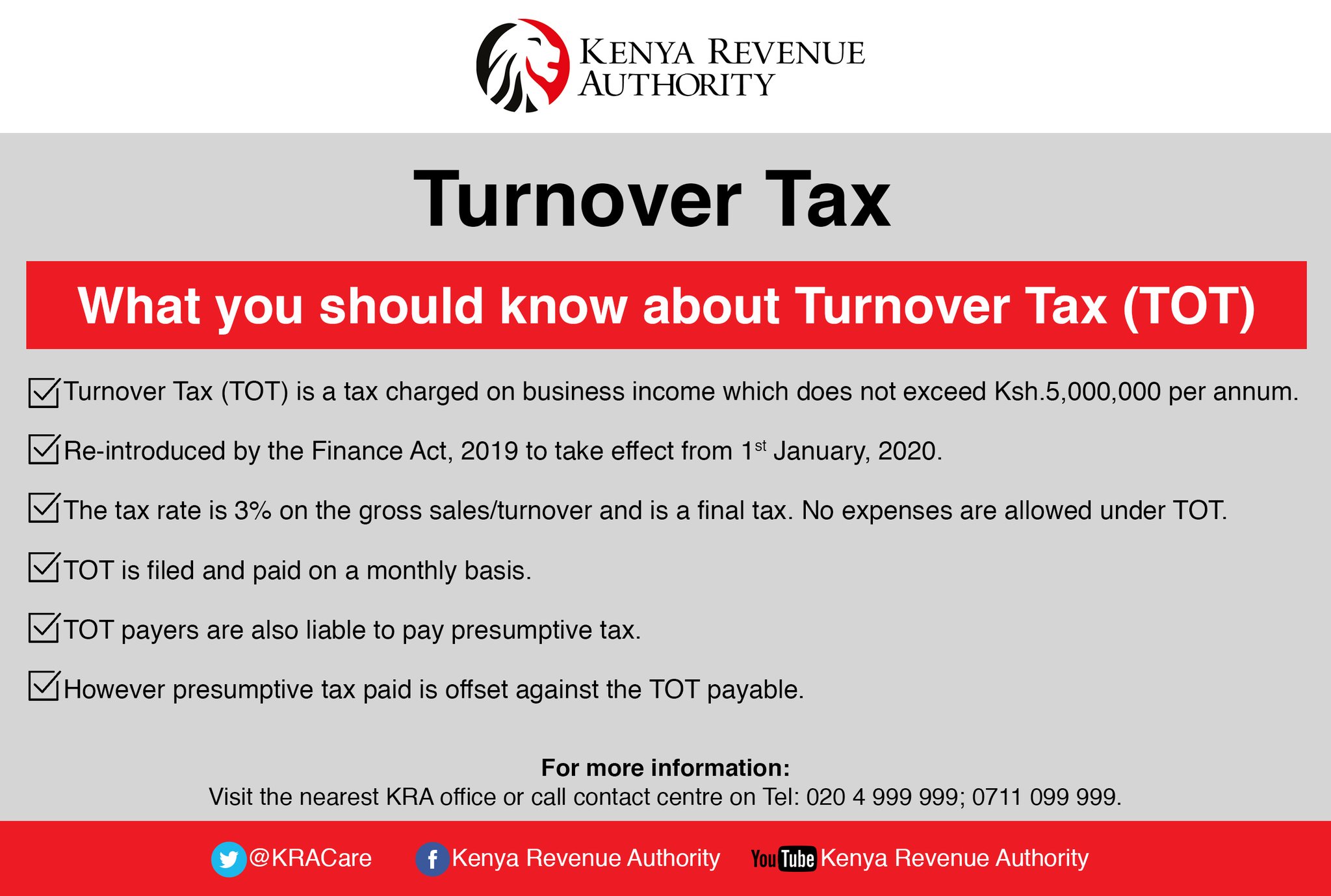Kenya revenue authority (kra) is charged with the duty of collecting revenue for the government of kenya. The kenya revenue authority is the government body that manages the nation's revenue income: Kenya revenue authority (kra), is an agency of the government of kenya that is responsible for the assessment, collection and accounting for all revenues that are due to. The kenya revenue authority (kra) was established by an act of parliament, chapter 469 of the laws of kenya, which became effective on 1 july 1995. The kenya revenue authority (kra) was established by an act of parliament, chapter 469 of the the authority is charged with the responsibility of collecting revenue on behalf of the government of.
